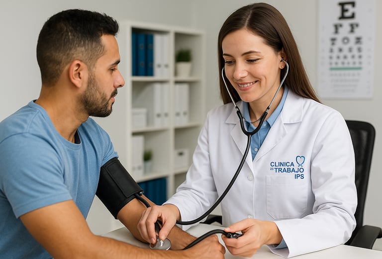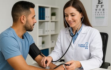 En Clínica del Trabajo IPS, nos especializamos en evaluaciones de salud laboral para asegurar que tus empleados estén aptos y saludables. Ofrecemos exámenes rápidos, personalizados y confiables para un ambiente laboral seguro y eficiente.